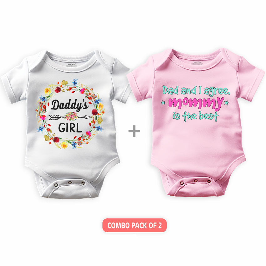 Celebrate the special bond between mom, dad, and baby with our adorable "Dad and I Agree Mommy Is the Best" combo pack. This combo is a shoutout to the coolest bond in the family.
